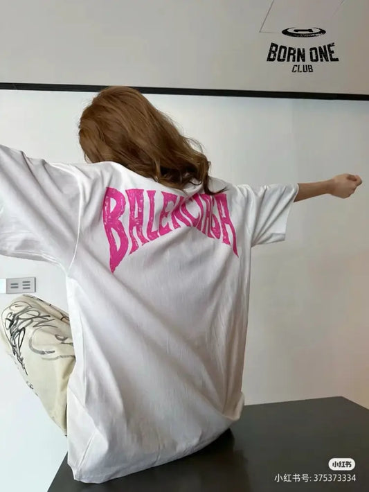 Balenciaga White Logo Graphic T-Shirt (Black) Camiseta