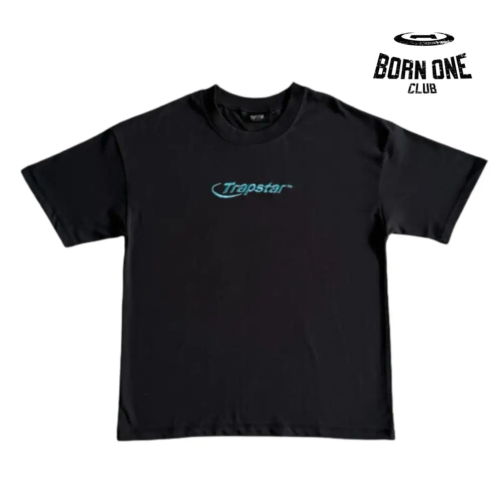 Camiseta Hyperdrive Embroidered Tee-Black and Turquoise Trapstar